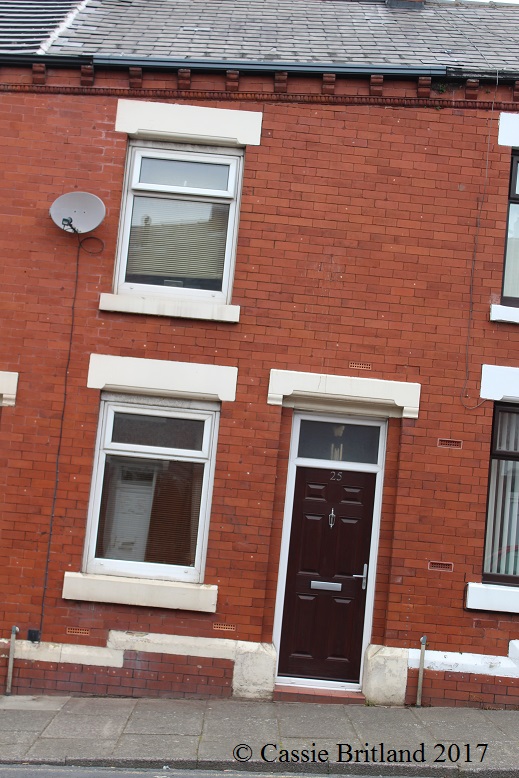 Snapped this pic a few streets away. This is pretty close to what Mary Ann Britland’s house would have looked like (minus the satellite dish). A two-up, two-down back-to-back with one window in each room. ‘Two-up, two-down’ refers to the house’s layout – two rooms upstairs (both bedrooms), and two rooms downstairs (a sitting room at the front – usually reserved for company or sometimes rented out to bring in a little extra money – and a kitchen at the back). Outside the kitchen was a small courtyard with a privy.